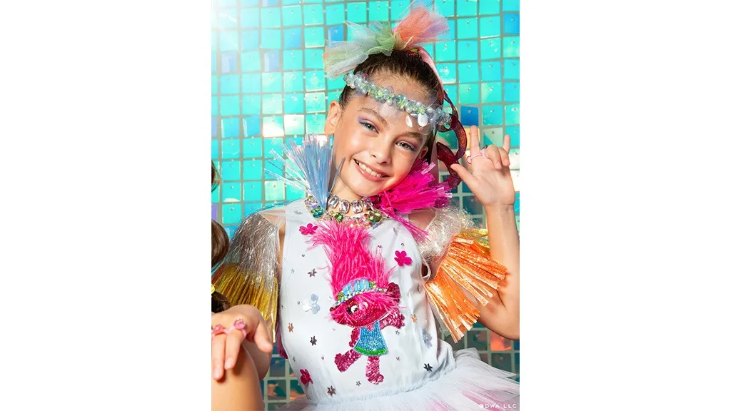 Trolls Band Together, zatímco nosí kousky z 15dílné kolekce oblečení Tutu Du Monde. Rodiny mohou nakupovat oblečení, doplňky a mnoho dalšího výhradně na webu tutudumonde.com.