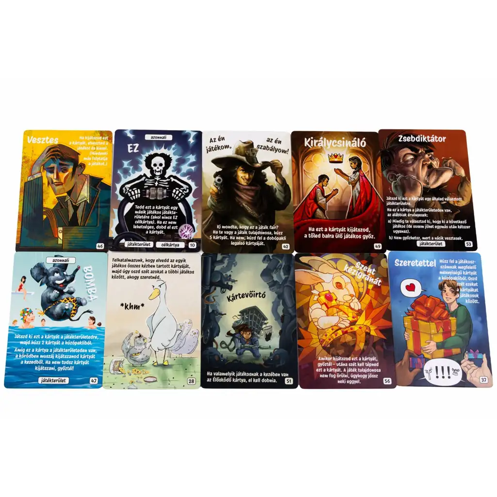 Pokud jsi někdy chtěl(a) hrát hru, kde nic není tak, jak vypadá, a pravidla se nejen porušují, ale i přepisují každou minutu, pak je Hát ez kész! právě pro tebe (a tvůj smysl pro humor)! Tato svižná, naprosto šílená karetní hra je jako dítě absurdní reality show a meme stránky – kde je cíl sice jednoduchý, ale cesta k němu naprosto nepředvídatelná.