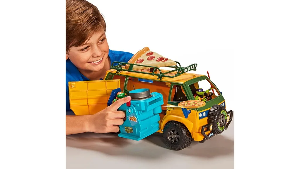 Doporučeno pro děti od 4 let, Pizza Hasičský Dodávkový Vůz je tajnou zbraní želv proti Superfly a jeho zlým silám. Dodávka je navržena tak, jak ji vidíme ve filmu, od zelené a žluté barvy až po ručně kreslený obrázek pizzy na straně. Když poprvé otevřete balení, budete muset sestavit několik volných dílů, takže dohled dospělých může být pro mladší děti užitečný. Mechanismus pro vystřelování pizzy také vyžaduje tři AA baterie (nejsou součástí), takže dospělí mohou pomoci je vložit před hraním.