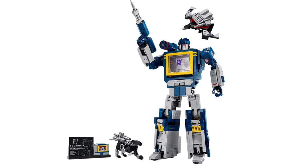 Rodiny mohou vystavit své vlastní Decepticon výtvory spolu s přiloženou prezentační tabulkou, na které jsou vidět statistiky síly Soundwave. Soundwave se připojuje k již existující sérii LEGO Icons Transformers, která v současnosti obsahuje také modely Optimus Prime a Bumblebee. Tato speciální kolekce dává fanouškům možnost postavit si a vystavit své oblíbené postavy doma, přičemž mohou poznat schopnosti a příběh ikonických postav vesmíru Transformers. Díky detailnímu zpracování a kvalitním prvkům jsou tyto modely nejen skvělé na hraní, ale i jako dekorace, takže poskytují skutečný zážitek pro každého fanouška.