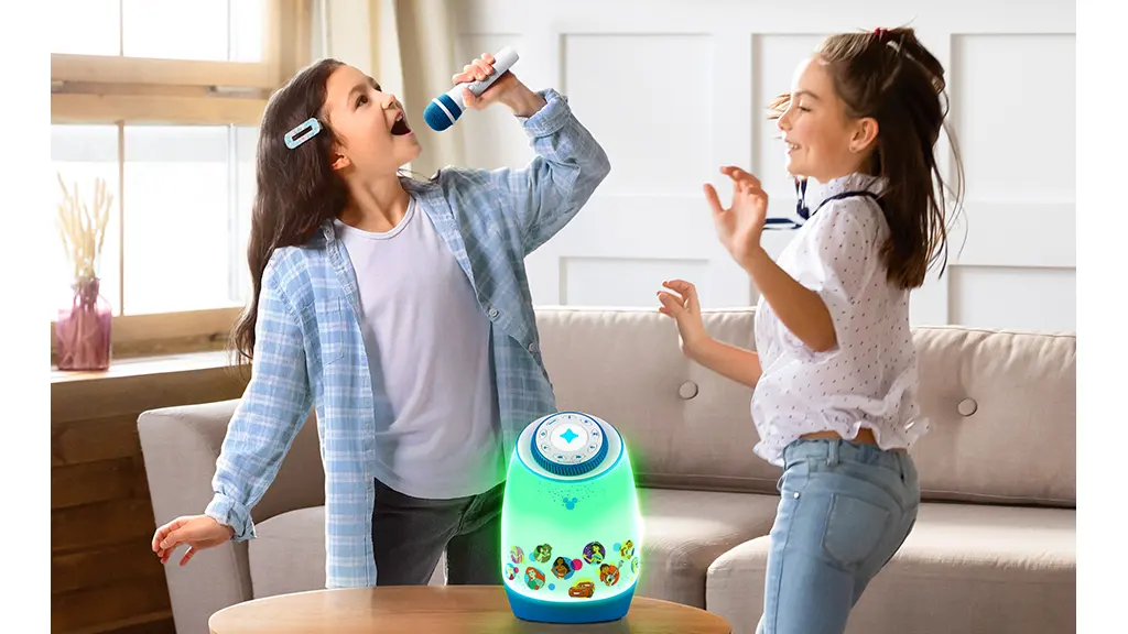 Připoj se ke své oblíbené streamovací službě a ulož si svůj přizpůsobitelný playlist s oblíbenými písněmi od Disney (aplikace vyžadována). Zpívej s bezdrátovým mikrofonem a nahrávej svůj hit, zatímco LED světelná show zvýší atmosféru tvého karaoke vystoupení.