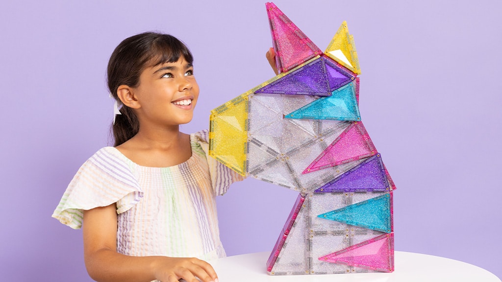 56dílná třpytivá sada Jednorožec je připravena přinést dětem fantazijní dobrodružství mezi jejich hračky. Děti mohou objevovat nové stavební možnosti, když vytvářejí třpytivého jednorožce z průhledných a zářivých, duhově třpytivých dílků. Stavitelé mohou použít různé tvary – například šestiúhelníky, obdélníky, trojúhelníky a lichoběžníky – aby vytvořili svého nového, kouzelného koňského kamaráda. Tato sada nejen rozvíjí kreativitu a jemnou motoriku, ale také poskytuje hodiny zábavy, během kterých si děti mohou vymýšlet a realizovat vlastní jedinečné příběhy. Třpytivé prvky dělají hotové výtvory ještě výjimečnějšími, takže každé dítě může s hrdostí ukázat svého vlastního, barevného jednorožce.Tyto balíčky s třpytivým motivem nejsou určeny jen pro zámky a jednorožce. Každý balíček otevírá brány kreativity a podporuje STEAM vzdělávání při každém magnetickém spojení. Navíc kreativní děti mohou třpytivé prvky kombinovat i s dalšími balíčky a sadami Connetix, což přináší ještě více možností pro tvoření a učení.