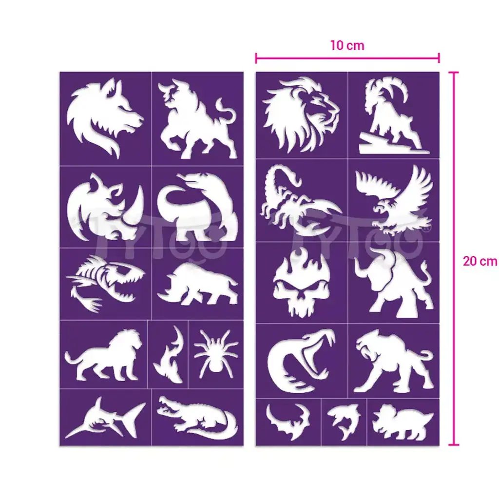 TyToo: Sada šablon na třpytivé tetování – divoká zvířata, 22 ks