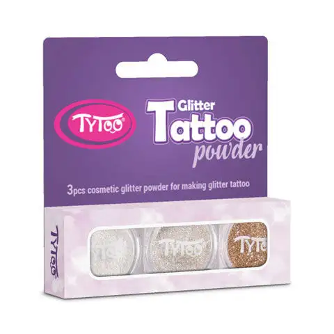 S třpytivými tetováními můžeme na kůži aplikovat spoustu vzorů a barev, nyní si můžete pořídit jemný set v bílých odstínech. Set obsahuje třpytivou bílou, zářivý diamant a šumivou barvu, s nimiž můžeme dosáhnout velmi střídmého, ale přesto nápadného výsledku. Nádoby, ve kterých přichází třpytivý prášek, jsou snadno ovladatelné, jejich víko lze snadno sundat a znovu uzavřít, a díky jejich velikosti můžeme třpytky snadno nanést štětcem. V naší nabídce najdete všechny nástroje, které byste mohli potřebovat, hledejte je také.