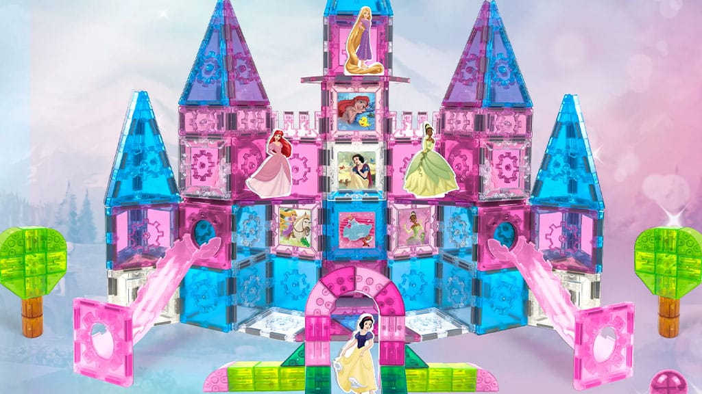 Sada Disney Princezny Magnetické Dlaždice Obří Zámek (99,99 dolarů) se skládá celkem ze 167 kusů, mezi nimiž najdete průhledné růžové, modré a bílé magnetické dlaždice. Sada dále obsahuje 3D dlaždice, skluzavky a také míček. V sadě najdete také magnetické dlaždicové figurky Moany, Lociky a Ariel, které jsou připraveny přinést do hry trochu Disney kouzla a zábavy v oblasti STEM (věda, technologie, inženýrství a matematika).