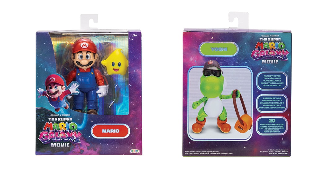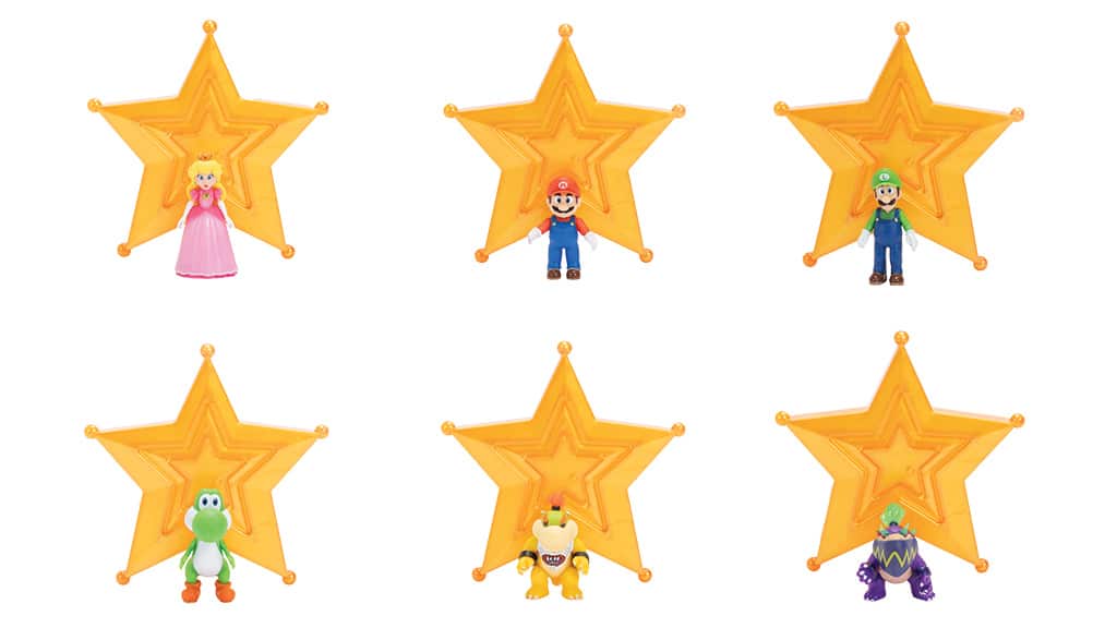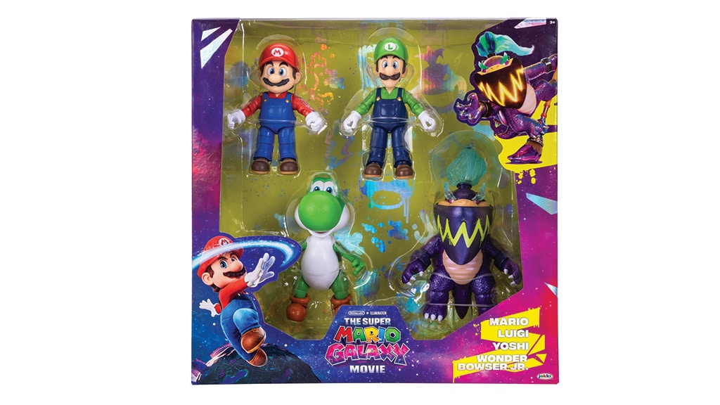 V kolekci najdete různé akční figurky o velikosti 12,5 cm, mezi nimiž jsou postavičky Mario, Luma, Yoshi, Rosalina a Bowser Jr.. Exkluzivní figurky Luigi a Wonder Bowser Jr. budou navíc dostupné pouze v obchodech Target. Děti si mohou oblíbené postavy nasbírat také jako minifigurky o velikosti 3,8 cm, součástí nabídky jsou i extra velké pohyblivé plyšové figurky, závodní auta na zpětný chod a joja svítící ve tmě. Kolekce nabízí všem fanouškům vzrušující možnost získat své oblíbené postavy v různých podobách, ať už jde o figurky, plyšáky nebo stylová autíčka.