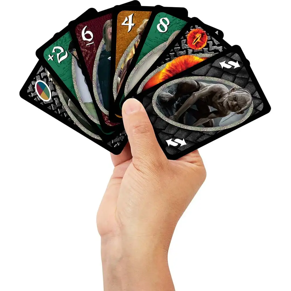UNO – Pán prstenů karetní hra kombinuje rychlou a snadno naučitelnou hratelnost klasického UNA s legendárním světem Pána prstenů, a tak nabízí jedinečný zážitek jak milovníkům společenských her, tak fanouškům Tolkiena. Tato edice přináší ke kartovému stolu ikonickou atmosféru a postavy z filmové série, zatímco si zachovává dobře známá pravidla a svižné tempo hry UNO.