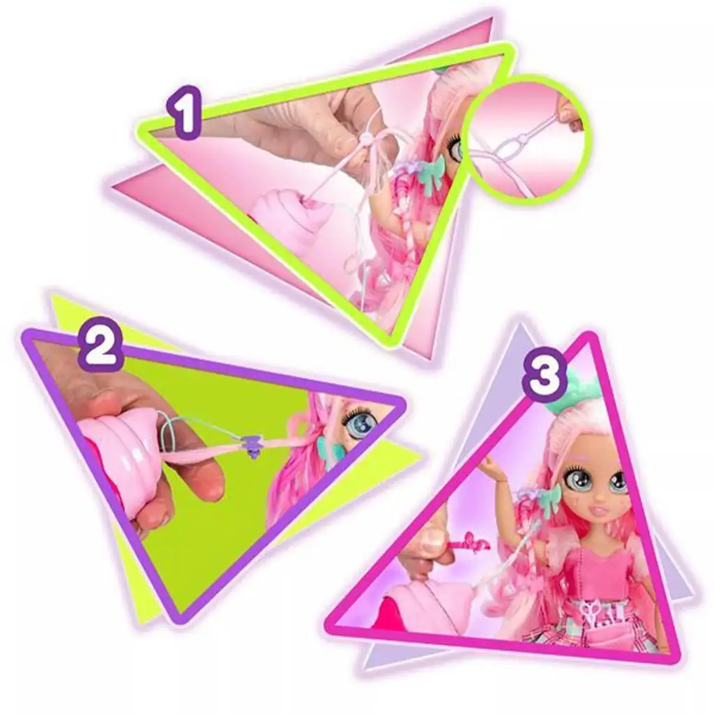 VIP Hair Academy Giselle panenka je perfektní volbou pro malé módní diktátory, kteří milují úpravu vlasů a kreativní hru. Gisellina fantastická růžová hříva nabízí nekonečné možnosti pro úpravu vlasů, takže dívky mohou volně snít o nových a nových účesech. Panenka má barevné oblečení a stylové doplňky, jako je volánová sukně, hřeben s mašlí a módní sponky do vlasů, které odrážejí moderní a hravý vzhled. Dlouhé, extra copánky dělají Giselle opravdu výjimečnou, takže hra je ještě vzrušující. Sada obsahuje vše, co je potřeba pro skutečný kadeřnický salon: kartáče, hřebeny, sponky do vlasů a další doplňky, se kterými může vaše dítě vytvářet jedinečné účesy. Navíc mohou měnit Gisellin šatník, aby vždy zářila s novým vzhledem.