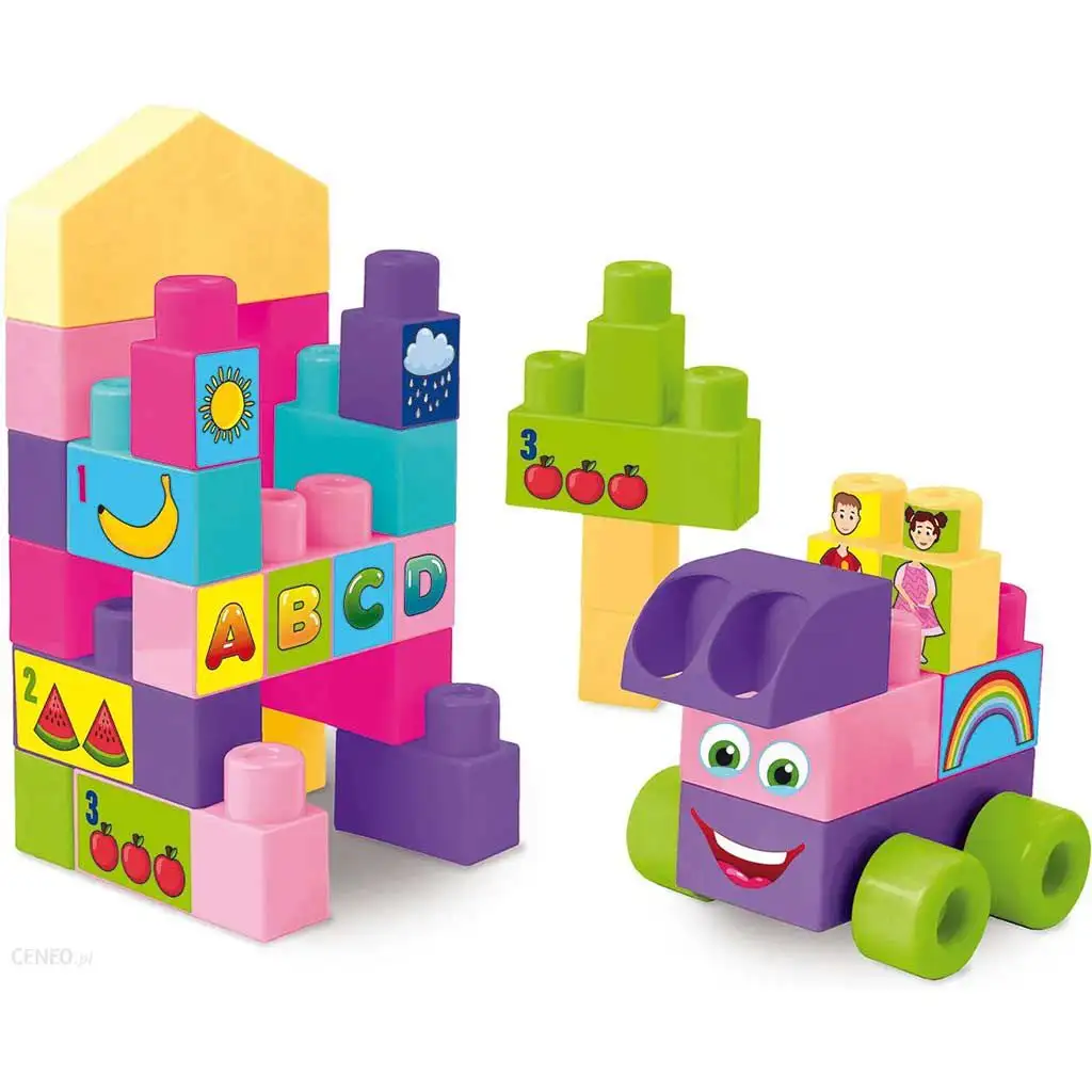 Objevte sadu Wader Big Blocks s 26 velkými stavebními kostkami, která zaručeně zabaví vaše malé dítě na hodiny! Velké kostky v sadě jsou ideální pro malé ruce, čímž podporují rozvoj jemné motoriky. Veselá kombinace růžové, zelené a žluté barvy zaujme dětskou pozornost, zatímco se hravou formou seznamují se světem barev a tvarů. Sada obsahuje také kostky s písmeny a čísly, což napomáhá osvojení základů čtení a počítání. Snadno sestavitelné a rozložitelné díly zajišťují, že kreativitě se meze nekladou.