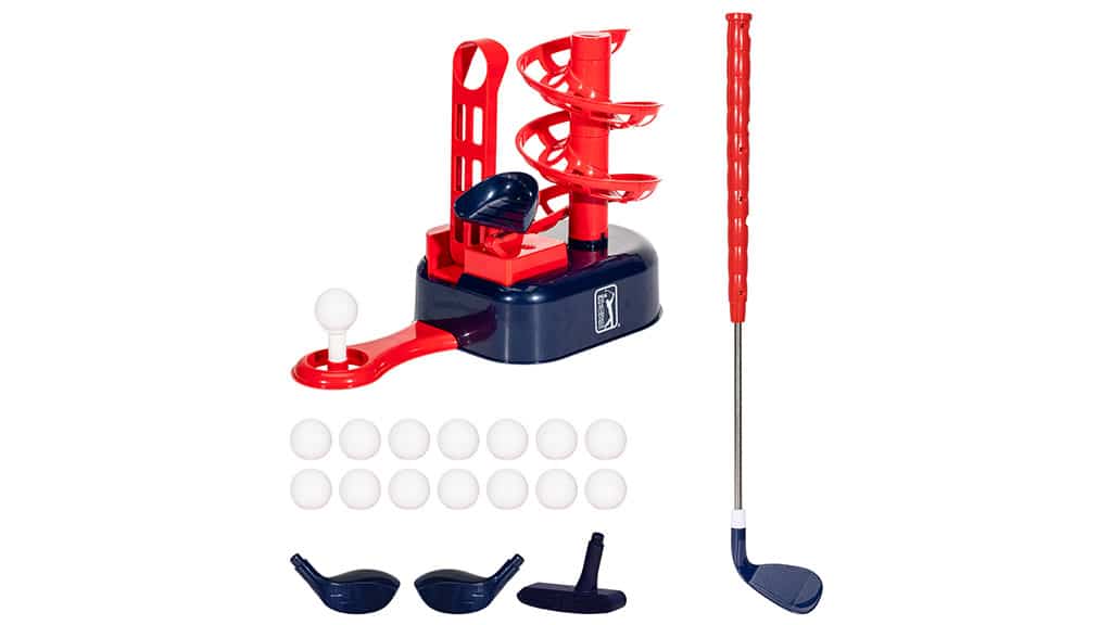 Malí golfisté mohou snadno trénovat své údery, aniž by museli neustále znovu uspořádávat míčky, protože nožním pedálem ovládaný automatický podavač míčků usnadňuje hru. Nastavitelná golfová hůl má několik hlavic, takže si děti mohou vyzkoušet různé údery. Sada je vybavena vestavěným zásobníkem na míčky, takže všechny potřebné pomůcky jsou po ruce pro trénink. Tato sada je ideální volbou pro osvojení základů golfu a rozvoj pohybové koordinace, přičemž dětem poskytuje zábavné vyžití.