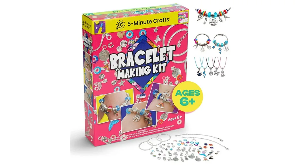 5minutová sada pro výrobu řemeslných náramků obsahuje 20 barevných korálků, 15 korálků s velkými otvory, dva náramky se šňůrkou, tři náramkové šňůrky a plastovou krabici na skladování. Milovníci šperků mohou vytvářet jedinečné náramky a být si jisti svým stylem, zatímco si vylepšují koordinaci ruky a oka.