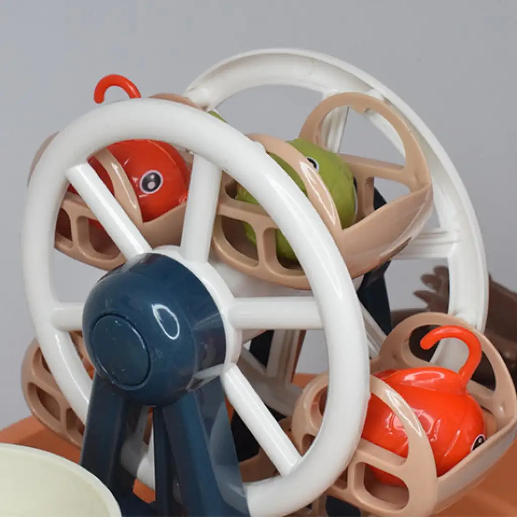 Tato super rybářská hra zaujme všechny věkové skupiny, které rády rybaří nebo se jen chtějí odreagovat a zároveň se skvěle bavit. Hra obsahuje bazén s nohama, který zajišťuje stabilní základnu, takže se nemusíte obávat, že by se během hry převrátil. Konstrukce bazénu umožňuje, aby voda s rybami proudila dokola pomocí elektroniky pro cirkulaci vody, což činí hru opravdu vzrušující, protože musíte chytat pohybující se ryby z vody. Kromě cirkulace vody hra také otáčí obří kolo, což poskytuje hráčům ještě lepší zážitek, a navíc může hrát tři různé zábavní parkové melodie. Kromě toho je ve hře také hrad, na kterém můžete stisknutím tlačítka na boku vystřelit ryby, které pak mohou sklouznout po skluzavce do vody. Pořiďte si ji a zaručeně budete mít s ní skvělý zážitek.