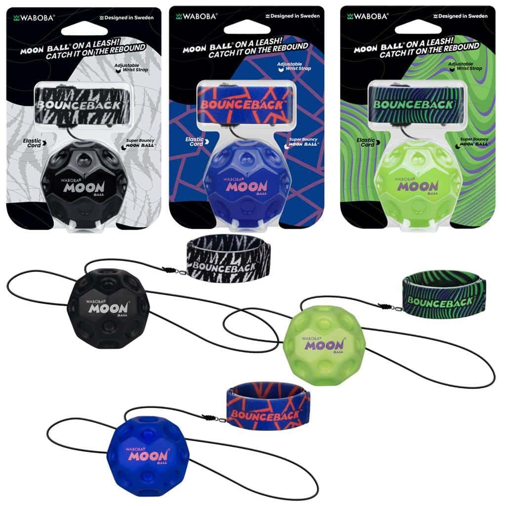 Zpestřete každodenní hru míčem Waboba Moon Ball Bounceback! Stačí připnout zápěstní pásek a zábava může začít: hoďte míč, sledujte, jak skáče do neuvěřitelných výšek, a chyťte ho, když se vám pružné lanko vrátí. Nemusíte se bát, že by se rozkutálel nebo ztratil, hra zůstává plynulá a dynamická. Díky speciálnímu složení materiálu a vnitřní konstrukci míč ukládá extra energii, takže při každém odrazu vyskočí vysoko. Jedinečný tvar umožňuje vašemu dítěti vytvořit si vlastní styl hodu, zatímco se zlepšuje jeho koordinace a obratnost. Ideální volba pro aktivní, veselou zábavu doma nebo venku. Uvedená cena se vztahuje na 1 kus produktu.
