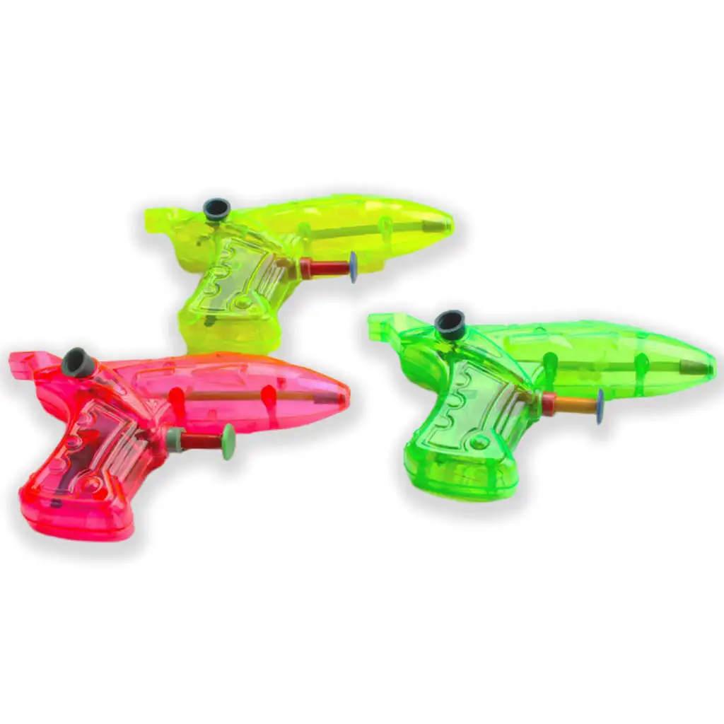 Malá vodní pistole je dostupná ve třech vibrujících barvách: růžová, zelená a žlutá. Tyto kompaktní pistole jsou ideální pro letní hry a vodní bitvy. Jsou snadno ovladatelné a dobíjecí, což zajišťuje dlouhodobou zábavu pro účastníky vodních bitev.