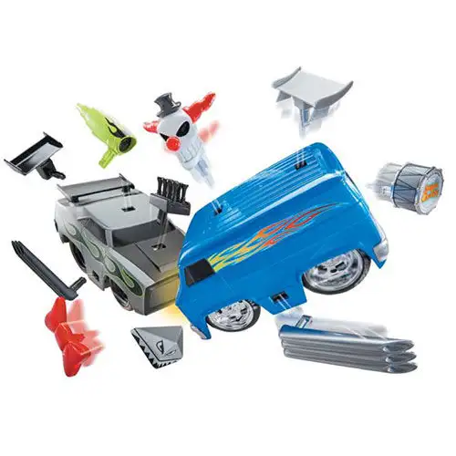 Ve hře Wreck Royale najdete dvě auta, jejichž prvkem je srážka. V tomto balení jsou Double Trouble a King Crash připraveni na srážku! Jeden z nich je důkladně vyladěný svalový vůz, zatímco druhý je klaunský minibus, ale nemusíte se ho bát. Podstata Wreck Royale spočívá v srážkách aut, protože když se tato auta srazí, jejich pružné nárazníky se otočí a připojené díly explodují ve všech směrech. Každé auto má čtyři exkluzivní, veselé "výbušné" díly, které děti mohou na svá auta posílit.