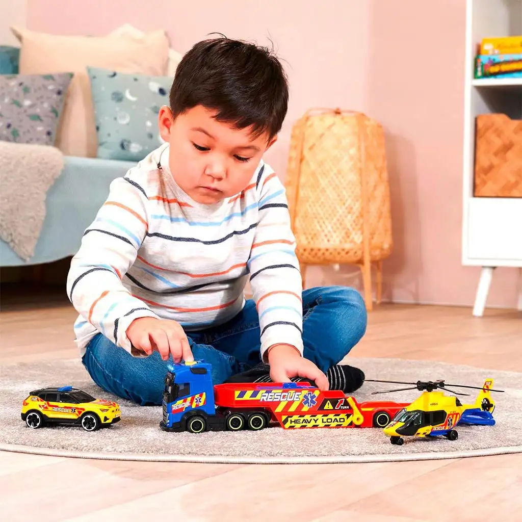 Díky záchrannému vozu vybavenému vrtulníkem a autem může vaše dítě objevit svět záchrany a pomoci, zatímco rozvíjí své sociální a motorické dovednosti. Hra pomáhá pochopit důležitost pomoci a odpovědnosti, zároveň poskytuje mnoho hodin zábavy a radosti. Interakce mezi různými vozidly a doplňky nabízí další možnosti hry a přispívá k rozvoji dětské představivosti a kreativity. Všechny prvky sady jsou vyrobeny z odolných materiálů, které odolají časté hře, takže si dítě může hru užívat dlouhou dobu.