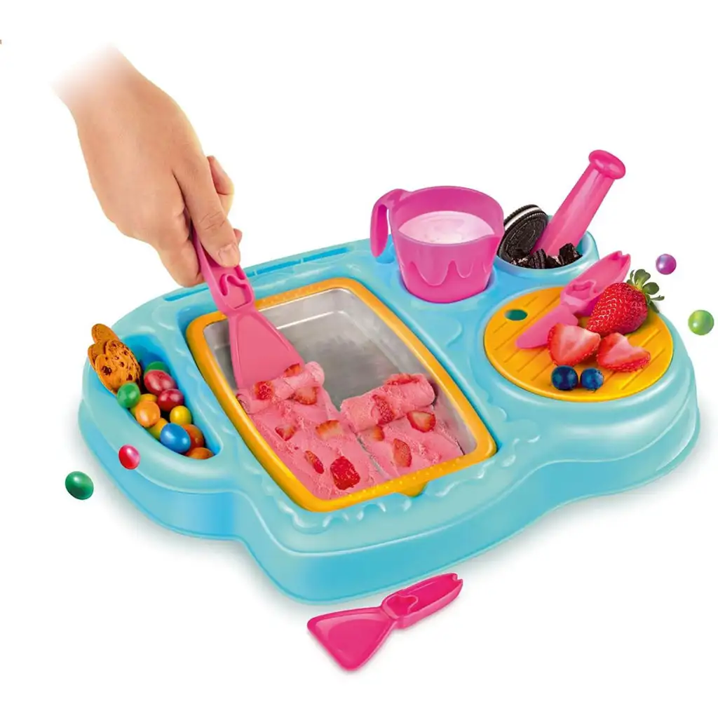 Hra nejenže podporuje kreativitu, ale také poskytuje skvělou zábavu, zatímco si děti mohou vyzkoušet roli malého šéfkuchaře. Pro provoz Zmrzlinové laboratoře nejsou potřeba baterie – stačí zmrazit kovový tác na několik hodin a kouzlo může začít! Ideální kuchyňská hračka pro domácí použití nebo jako hlavní atrakce na narozeninové oslavě. Zážitek je nejen chutný, ale i vzdělávací, protože děti se hravou formou seznámí se základy výroby zmrzliny.