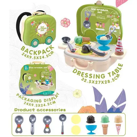 Zmrzlina je téměř každého dítěte oblíbená pochoutka, a proto jsme pro vaše dítě přinesli stánek se zmrzlinou, který si může vzít kamkoliv s sebou. V sadě najdeme různé zmrzlinové lžíce, stejně jako různé kornouty a kopečky zmrzliny, s nimiž může hra začít. Všechny tyto prvky mají detailní provedení, takže vaše dítě může mít pocit, že opravdu provozuje stánek se zmrzlinou, a do hry může zapojit celou rodinu. Pořiďte si ji a hledejte v naší nabídce i další varianty.