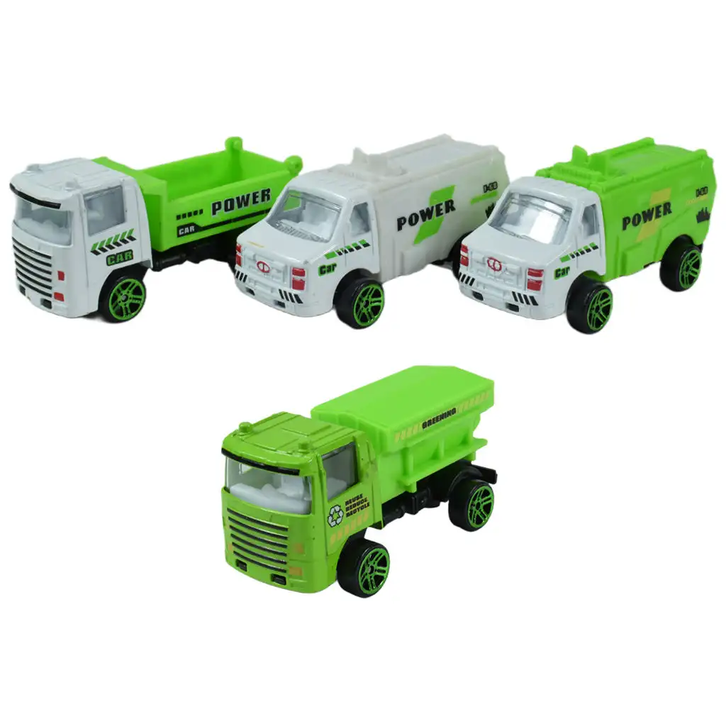 Tato flotila vozidel pro selektivní sběr odpadu vynikající kvality je ideální volbou, pokud chcete, aby vaše dítě myslelo na své okolí a hřiště čistě a vědomě. Tyto speciální vozidla jsou vyrobeny z kovu a mezi nimi najdete auta, která jsou potřebná v pravé metropoli. Vozidla jsou speciálně navržena pro přepravu různých druhů odpadu do zpracovatelského závodu, kde je odpad odborně tříděn a recyklován.