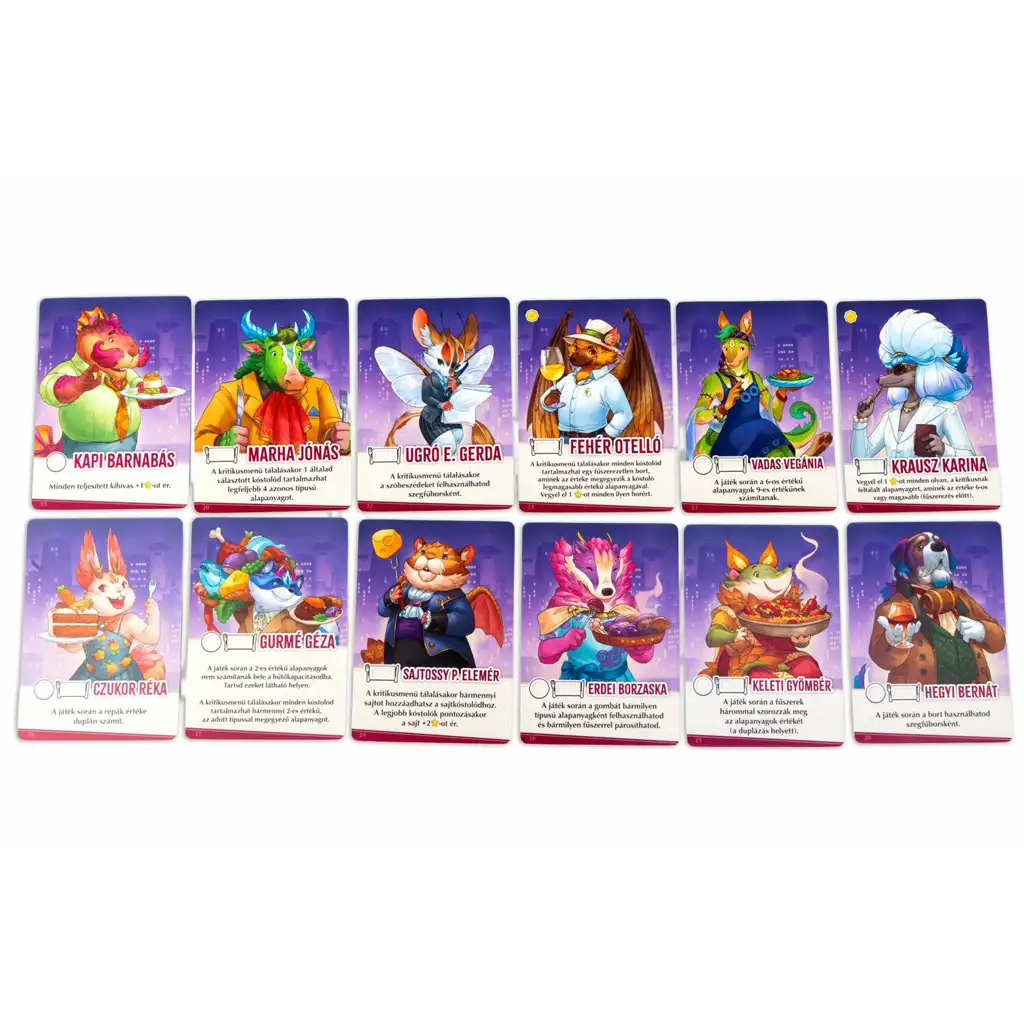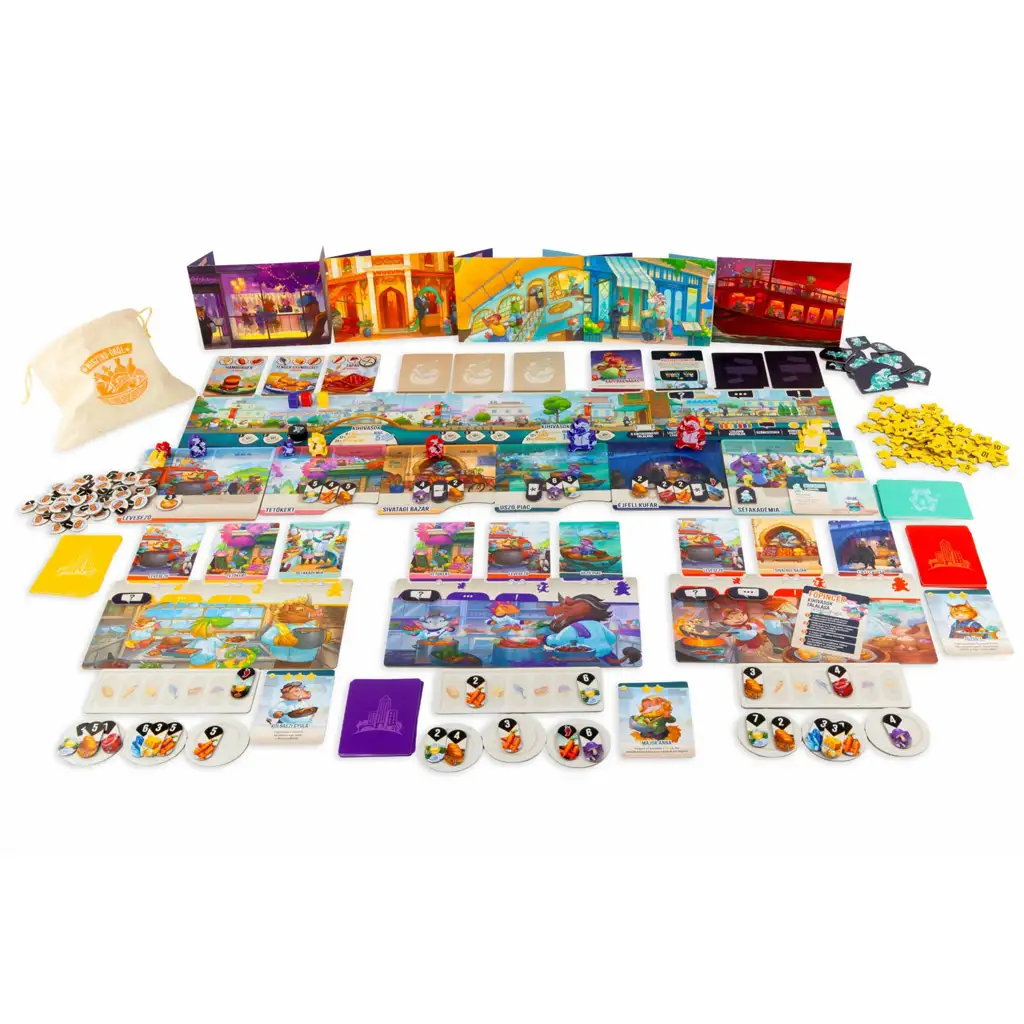 Představ si, že ve čtvrti plné rušných restaurací v malém městečku provozuješ vlastní bistro – a to ne ledajakým způsobem! Ve stolní hře „Zvířecí pochoutky“ se ty a tvá rodina můžete vžít do rolí jedinečných zvířecích šéfkuchařů, abyste bojovali o ty nejlepší pokrmy, nejchutnější suroviny a přízeň kritiků. Čeká vás napínavá, taktická hra, kde na každém rozhodnutí záleží a každý tah přináší nové výzvy!