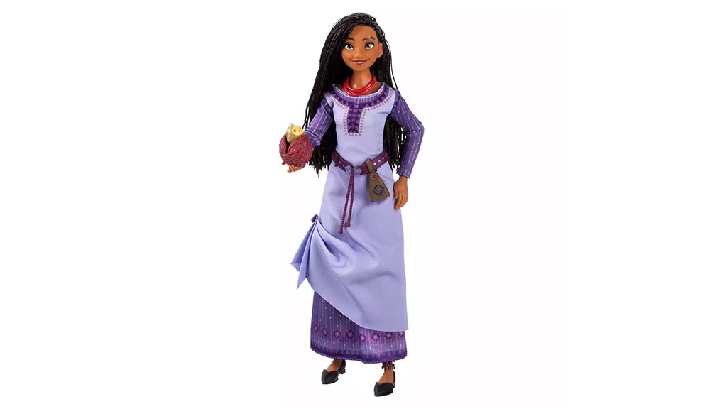Cestujte do království Rosas s touto hudební a kouzelnou panenkou. Asha říká 20 různých vět a nosí svůj tradiční cop a nádherné fialové šaty známé z filmu. Panenka Asha přichází se svými dvěma přáteli, Star a Valentino.Další ikona Disney je tady, s měkkými copánky a krásným fialovým šatem! Tato panenka přichází s Valentino a Star, doplňky jako Ashinou knihou, taškou a šátkem!