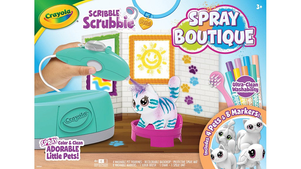Umístěte kteréhokoli ze čtyř malých zvířátek na křeslo v salonu, abyste přizpůsobili jejich vzhled pomocí přiložených osmi omyvatelných fixů a vzduchového nástroje. Poté zvířátka omyjte vodou, abyste vytvořili nové designy. Doporučeno od 3 let.