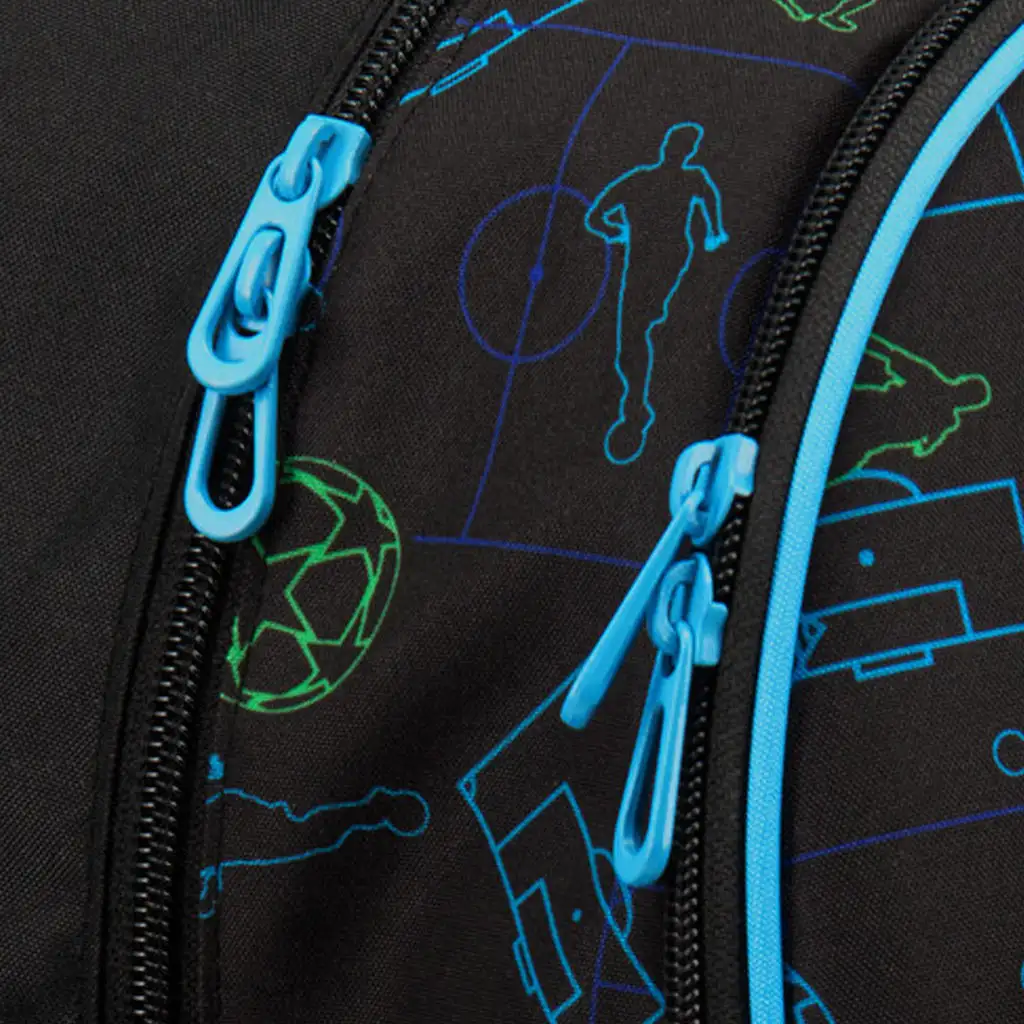 - 3 hlavní kapsy na zip, držák na psací potřeby, boční kapsy a reflexní prvky pro větší bezpečnost