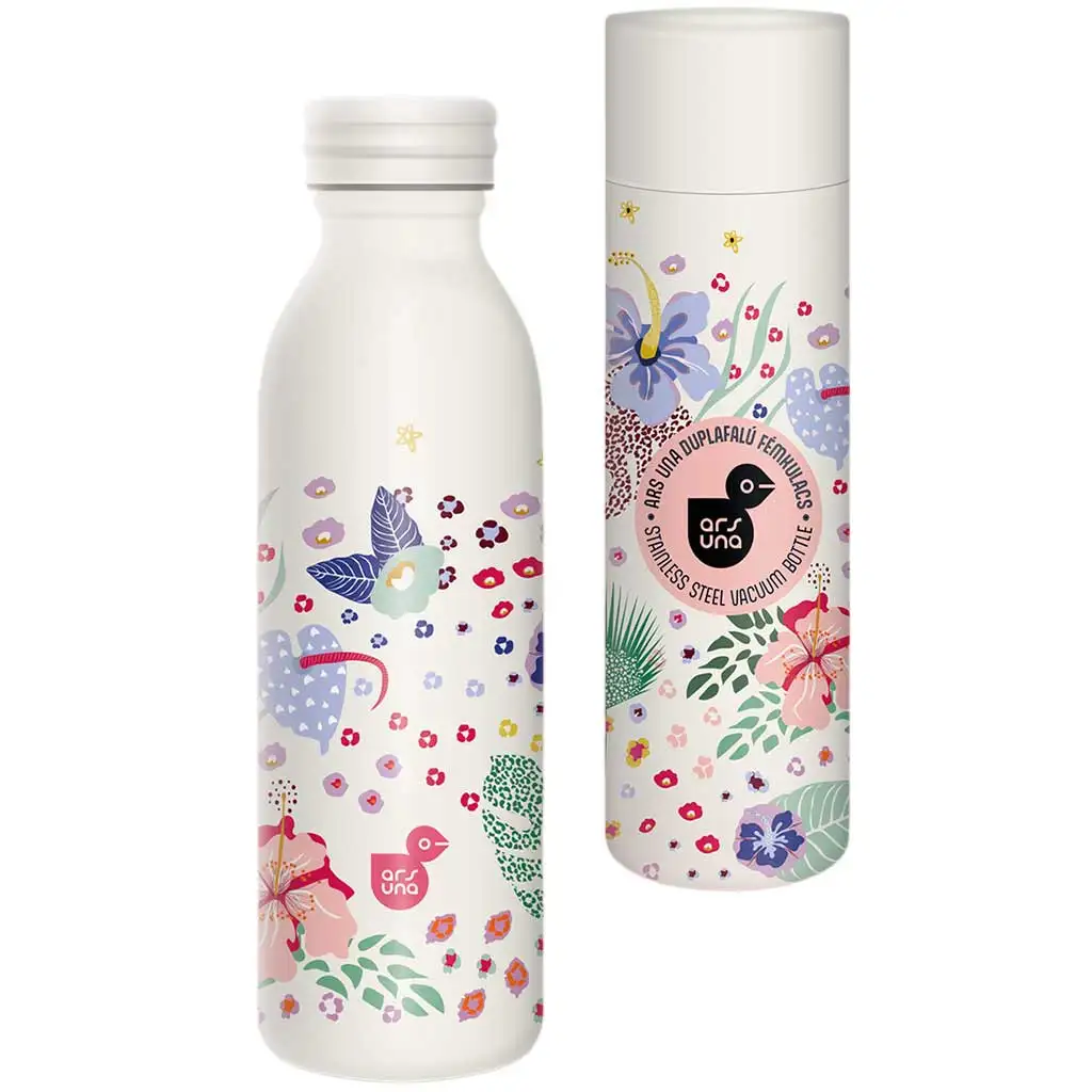 Ars Una Cream Hibiscus dvoustěnná kovová láhev na pití není jen praktická, ale také upoutá pozornost svým úchvatným designem. Na světlém, krémovém podkladu se objevují různé barevné, exotické květiny a listy, které vyzařují přírodní a svěží atmosféru. Tato 600 ml láhev je ideální volbou pro každodenní použití, ať už ji vezmete do školy, do práce nebo na cestování. Díky stylové dárkové krabičce může být také opravdu výjimečným dárkem.