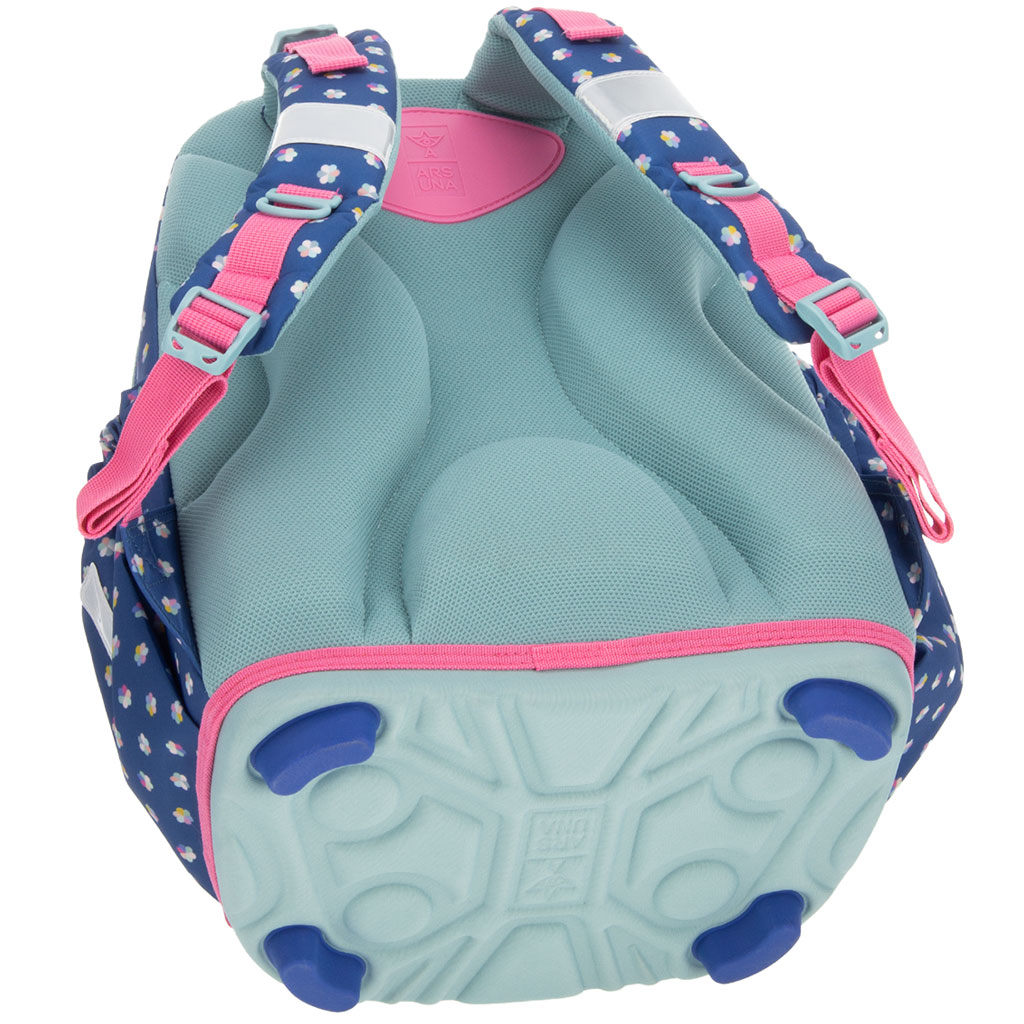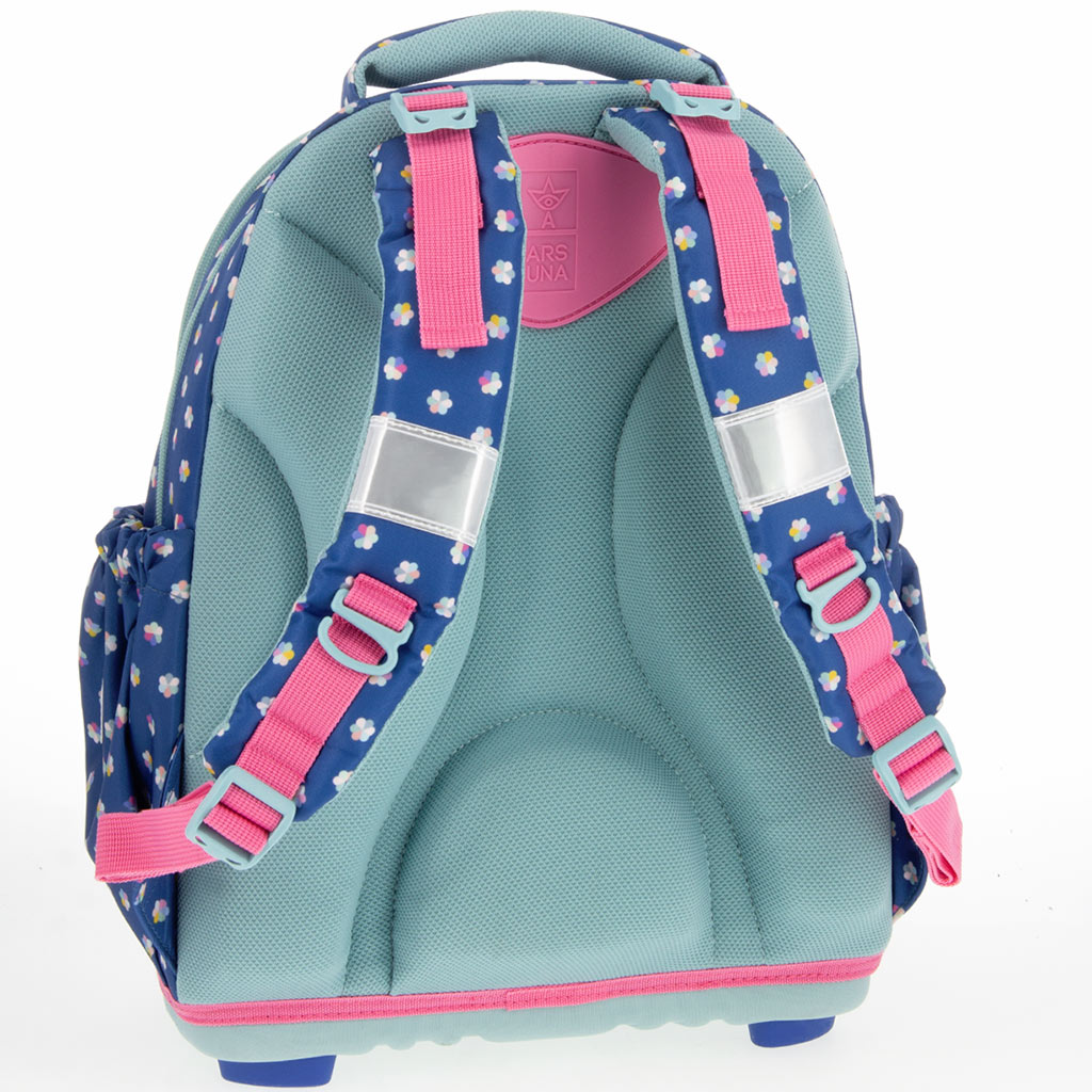 Taška není jen hezká, ale i ergonomická: je vyrobena s opěrou šetrnou k páteři a s polstrovanou bederní částí, která pomáhá udržovat správné držení těla. Díky měkce polstrovaným ramenním popruhům s možností nastavení v několika bodech se dá snadno přizpůsobit postavě dítěte. Je mimořádně lehká, pouze 0,9 kg, takže v každodenním používání zbytečně nezatěžuje záda.