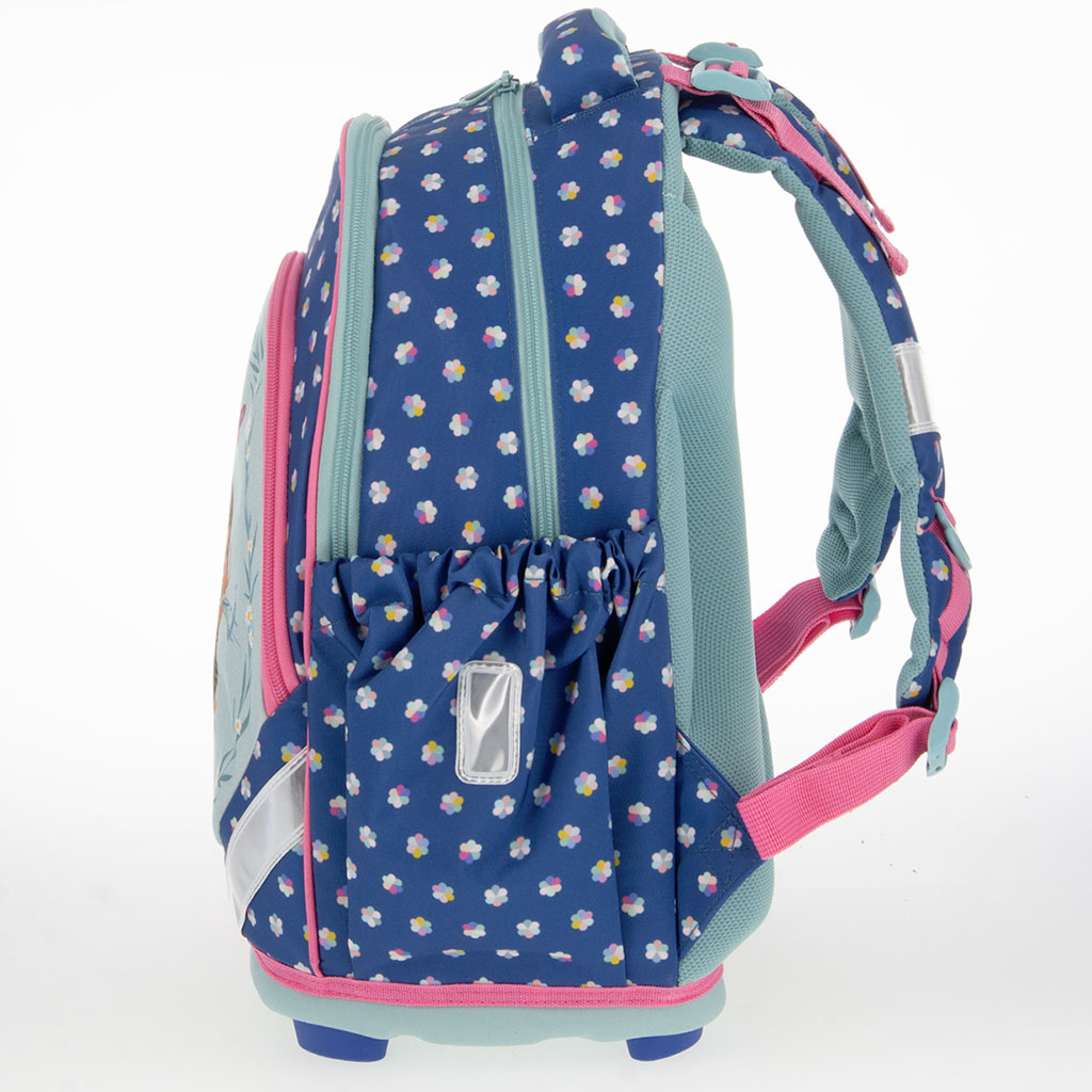 Anatomická školní taška Ars Una Fresh Flowers je dokonalou volbou, pokud pro vaše dítě hledáte opravdu roztomilou, veselou vzorovanou tašku. Roztomilý motiv s ježkem a květinami a harmonická kombinace pastelových barev činí tento model opravdu oblíbeným a zaručeně vykouzlí úsměv na tvářích malých školáků každý den. Doporučujeme ji především žákům 1.–3. třídy, takže její rozměr a provedení jsou ideální pro mladší školní věk.