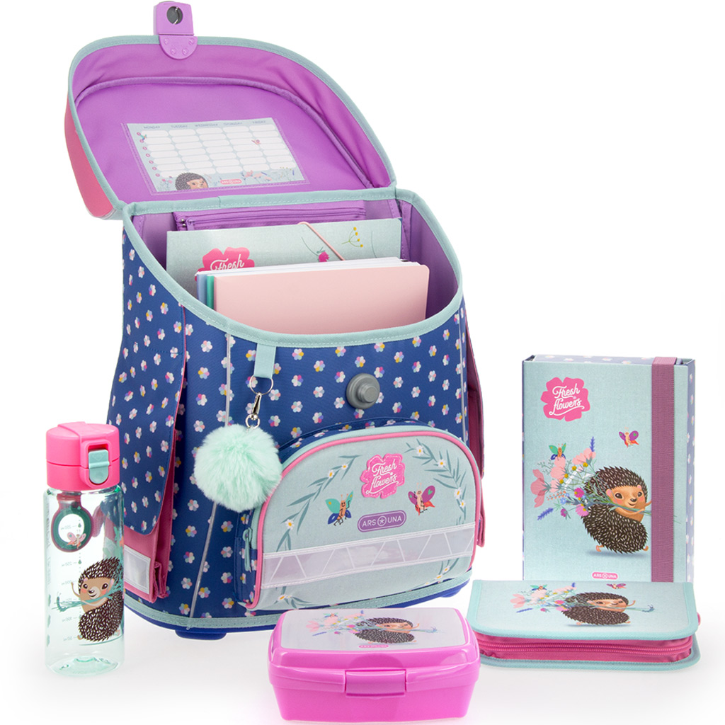 Školní aktovka Ars Una Fresh Flowers s magnetickým zapínáním je ideální volbou, pokud pro své dítě hledáte pohodlnou, praktickou a opravdu oblíbenou školní tašku na nižší stupeň základní školy. Byla navržena speciálně pro žáky 1.–4. třídy, takže její rozměry, provedení a hmotnost dokonale odpovídají potřebám menších dětí. Roztomilý motiv s ježkem a květinami a veselé barvy jistě zpříjemní všední dny, takže si ji vaše dítě bude každý den nosit s radostí.