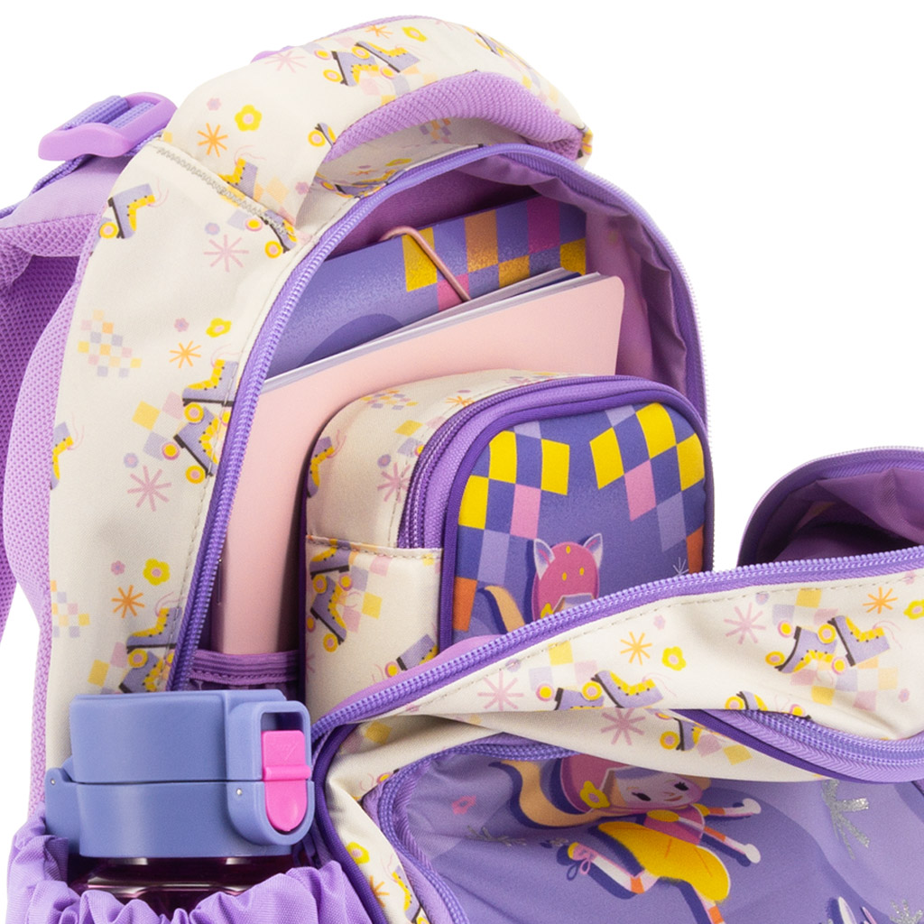 Anatomický školní batoh Ars Una Keep Rolling je perfektní volbou, pokud hledáte veselou, přitom praktickou tašku pro své dítě do začátku školy. Batoh zdobený motivem na kolečkových bruslích a v pastelově fialových barvách není jen stylový, ale byl navržen speciálně pro potřeby mladších školáků. Doporučujeme pro žáky 1.–4. třídy, takže je ideálním společníkem pro každodenní učení.