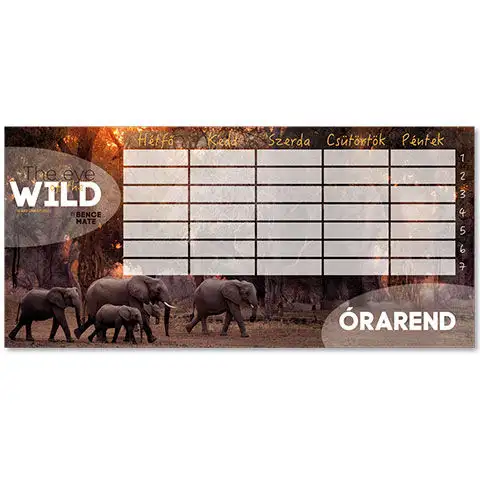 Přírodovědné filmy vždy okouzlí děti, protože přivádějí svět savany do dosahu, takže tomuto slonímu rozvrhu hodin bude jistě v penálu vyhrazeno ceněné místo. Rozvrh hodin Ars Una je tvořen jedním listem, ale má dvoustrannou konstrukci, takže na něm můžete označit týden A a B. Rozvrh hodin je v maďarštině, vyrobený z 250g pololesklého tiskového papíru, který má nádherné barvy a můžete na něj psát tužkou i perem. Rozvrh hodin se vejde do většiny penálů, aby byl vždy po ruce a na očích.