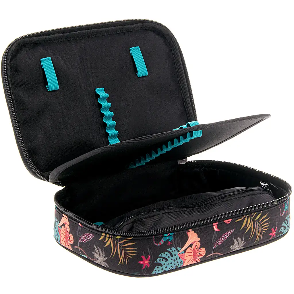 Tahiti vícepatrový penál od značky Ars Una je skutečně okouzlující a praktická volba pro každého školáka, který má rád kreativitu a pořádek. Exotický, tropický květinový vzor penálu vás okamžitě přenese na vzdálený, sluncem zalitý ostrov – vzory zářící živými barvami na černém podkladu zajišťují jedinečný vzhled, který rozhodně nelze přehlédnout.