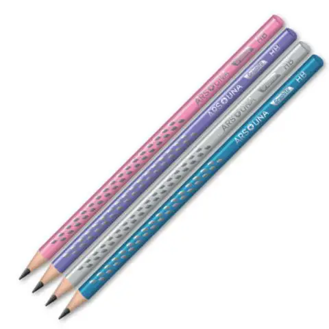 Tyto nádherně krásné tužky jistě zaujmou malé i velké. Stříbrný listový vzor je opravdu zvláštní a dodává tužkám eleganci, které jsou k dispozici v několika barevných variantách. Grafitové tužky Ars Una prémiové kvality jsou skvělé pro použití ve škole, doma nebo dokonce v kanceláři. Trojúhelníkový tvar zajišťuje pohodlné držení během použití. Tužka je vyrobena z kvalitního dřeva a je naplněna odolnou proti lámání špičkou. HB tvrdost je nejběžnější, univerzální typ.