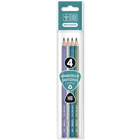 Tento balíček grafitových tužek je skvělou volbou pro školní rok, protože obsahuje čtyři tužky, takže se dostane do penálu i do držáku tužek na dětském psacím stole, aby byly vždy po ruce. Grafitové tužky Ars Una prémiové kvality mají trojúhelníkový tvar, který podporuje děti v správném držení psacích potřeb, a zároveň umožňuje pohodlný a stabilní úchop. Tužka má odlamovací grafitovou špičku, která se dobře špičkuje, takže je ideální volbou pro kreslení i psaní.