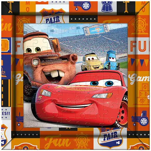 Každý malý kluk bude určitě hrdě vystavovat tento puzzle na stěně svého pokoje, protože zobrazuje dvě oblíbené postavy z animovaného filmu Auta, závodníka Bleska McQueena a jeho vtipného kamaráda Buráka, a navíc sada obsahuje i rámeček, takže z něj snadno vznikne opravdový obraz. Puzzle od Clementoni se snadno skládají a dokonale pasují, zatímco díky bezkompromisním, vynikajícím tiskovým technikám je hotový obraz dechberoucí ostrosti a plný živých barev.