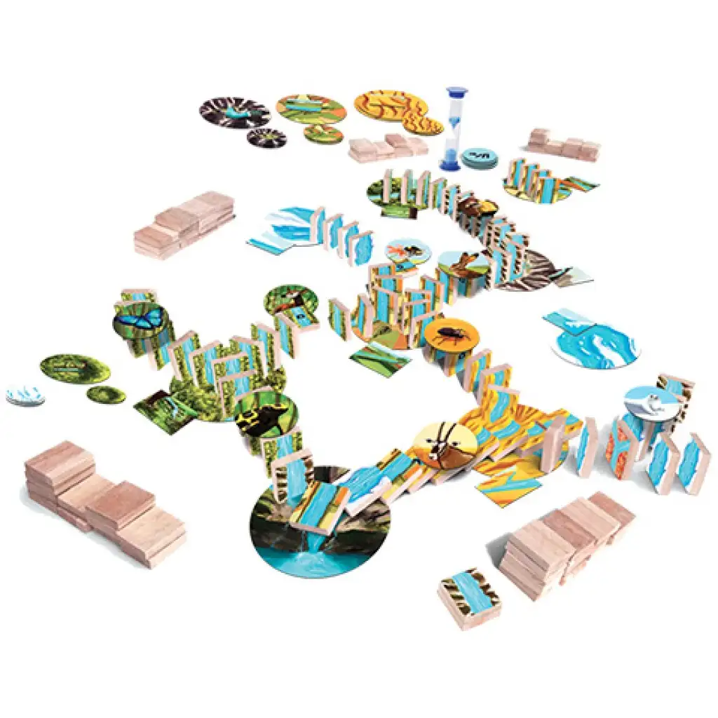Pokud se pustíte do deskové hry Aya, čeká vás mimořádná cesta, protože hra zahrnuje prohlídku rozmanitých, dechberoucích krajin a zvláštních zvířat, zatímco procházíte její trasou. Buďte chytří a ve spolupráci se svými spoluhráči vytvořte nejlepší fotografii, kterou můžete sdílet z tohoto mimořádného dobrodružství! V hře Aya je důležité spolupracovat se svými spoluhráči a sbírat co nejvíce krajinných destiček a žetonů s fotografiemi zvířat, které pak musíte postavit vertikálně, ne příliš daleko od sebe, přesně jako domino. Na konci hry se tyto destičky jednoznačně zhroutí jako kaskádový vodopád a odhalí krásnou krajinu a zvířata. Vytvářejte a objevujte pokaždé nový svět, když hrajete s rodinou a přáteli.