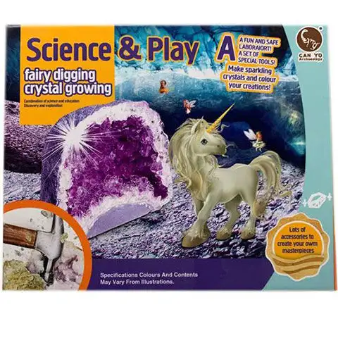 Jednorožci jsou nejvíce kouzelnými postavami v pohádkách, kde hrdinové na konci dobrodružných cest nacházejí obrovské krystaly a drahokamy. Vám není třeba překonávat moře a čelit nesčetným nebezpečím, abyste si mohli sami vytvořit nádherné a velké třpytivé krystaly. V tomto balíčku najdete vše, co děti potřebují k pěstování různě barevných a tvarovaných krystálů, které pak jistě budou nejkrásnějším ozdobením místnosti, a to vše stačí udělat podle pokynů ilustrovaného návodu.