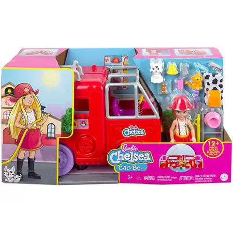 Děti mohou pomoci panence Chelsea zachránit den svým vlastním hasičským autem, které má otočné kola a spoustu příběhových možností. Když Chelsea a její štěně dorazí na místo, děti mohou použít záchranářský žebřík a skládací hasičskou hadici, poté mohou otevřít hračkovou sadu a objevit další zábavné příběhy s myčkou, první pomocí, patrovou postelí a mnohem více. Panenka Chelsea nosí roztomilou hasičskou uniformu s odnímatelnou sukní, helmou a botami. S pomocí nálepky mohou děti přizpůsobit Chelsea panenku a více než patnáct doplňků, včetně židle, domácích zvířat a mnoho dalších, doplňuje hru. Hračková sada je pěkně skládací a uchovává panenku a předměty pro zábavu na cestách.