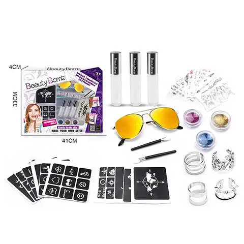 Kreativní sada Beauty Bomb s třpytivými tetováními obsahuje všechny potřebné nástroje, které dívky potřebují k realizaci svých nejodvážnějších nápadů. Můžou experimentovat s třpytivými šperkovými nálepkami na tetování v různých stylech a v rámci sady je také stylové sluneční brýle. Všechny složky balení jsou hypoalergenní, vyrobené bez testování na zvířatech, splňují všechna kosmetická kritéria a mohou být bezpečně používány na pokožce a jako šperkové doplňky. Dívky mohou vyjádřit svou individualitu a samozřejmě svou kreativitu s nejmodernějšími vzory a samozřejmě spoustou třpytky!