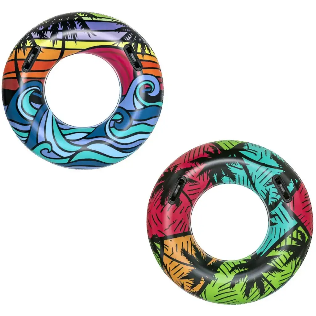 Seznamte se s nafukovacím kruhem s palmami, který je dostupný ve dvou variantách, aby byl zážitek z vodních radovánek ještě pestřejší a veselější! Nafukovací kruh o průměru 91 cm je vyráběn pod názvem Bestway® CoastalCastaway™ Swim Tube a vytváří malý oázu na vodě.