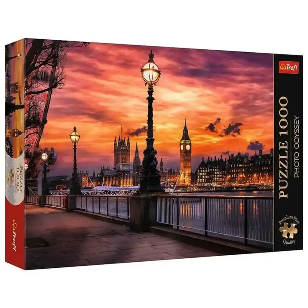 Toto úchvatné puzzle Big Ben v Londýně s 1000 dílky nabízí skutečný zážitek pro všechny, kteří milují architekturu, detailní obrázky a kvalitní skládačky. Londýnské panorama zalité západem slunce, s proslulým Big Benem a Westminsterským palácem v pozadí, poskytuje dechberoucí pohled – a také fantastickou výzvu pro ty, kteří se rádi ponoří do klidného, soustředěného světa skládání.