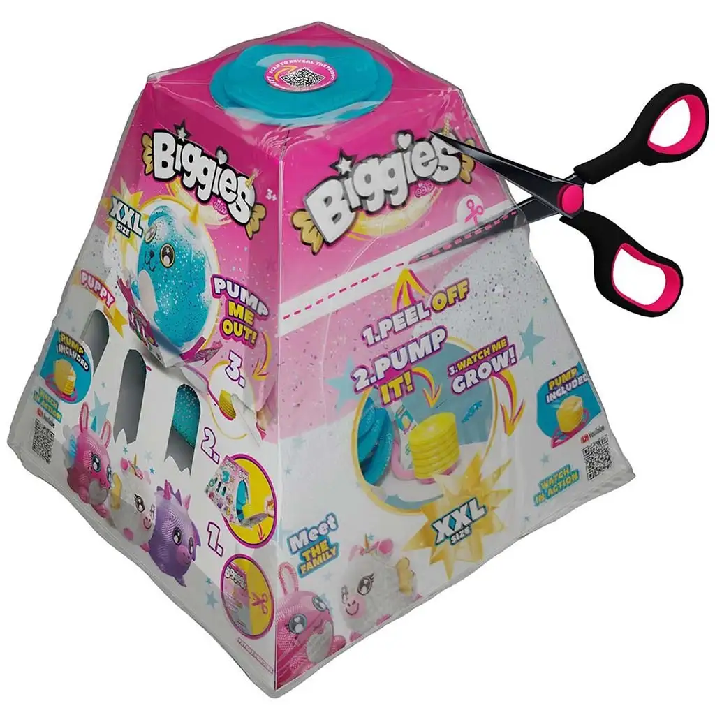Biggies plyšáci mají jedinečný design: jejich velké, zářivé oči a přátelský, roztomilý obličej okamžitě okouzlí děti. Nafukování pomocí pumpy je jednoduchý a zábavný úkol, který mohou snadno provádět i menší děti pod dohledem rodičů. Biggies plyšáci jsou ideální pro děti ve věku 4-10 let, které rády dostávají překvapení a užívají si měkké, objímatelné hračky.