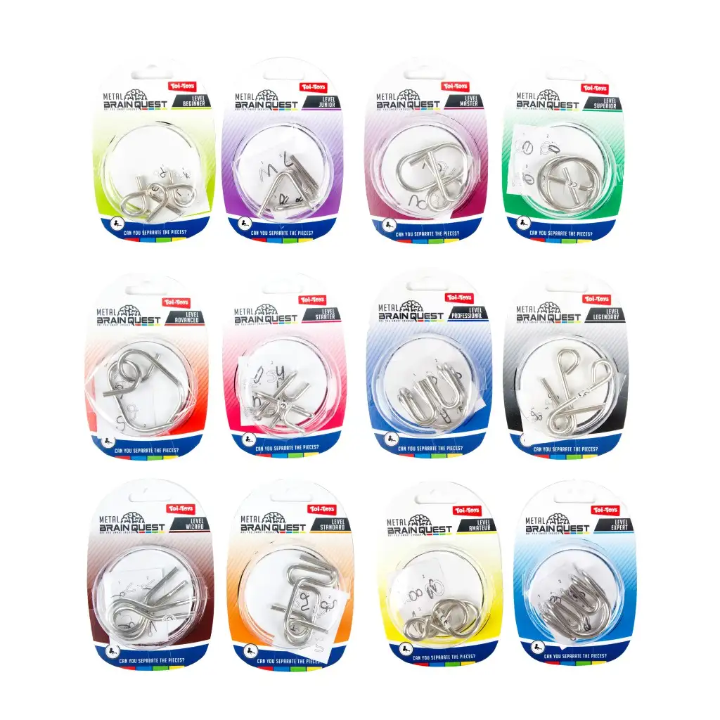 Otestujte svou mysl s hlavolamy Brain Quest! Tyto speciální kovové hlavolamy jsou ideální pro všechny věkové kategorie, které rády čelí logickým výzvám. Hlavolamy Brain Quest jsou k dispozici v různých úrovních obtížnosti, takže si každý, od začátečníků po pokročilé, najde vhodnou výzvu. Jejich cíl se zdá jednoduchý: oddělit kovové části a poté je znovu sestavit – ale je to mnohem větší výzva, než se na první pohled zdá!