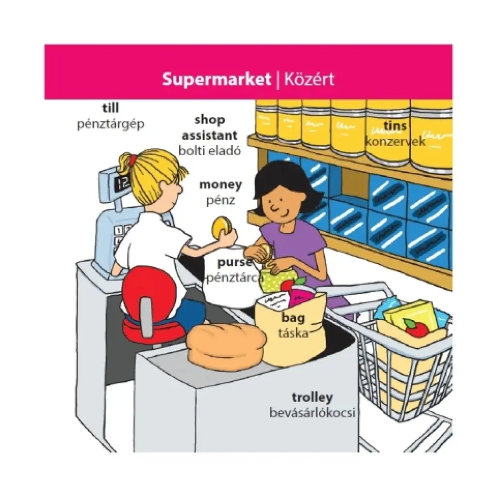 Zde je skvělá hra, se kterou si malí i velcí mohou zábavnou formou zlepšit svou znalost angličtiny. Karty v sadě zobrazují různá místa/situace a na každé kartě je několik předmětů nebo osob označeno jak maďarsky, tak anglicky. Cílem je zapamatovat si během 10 sekund co nejvíce věcí z karty v angličtině a poté je vyjmenovat, dokud v přesýpacích hodinách ještě padá písek. Hra se dá výborně hrát jak samostatně, tak i s přáteli.