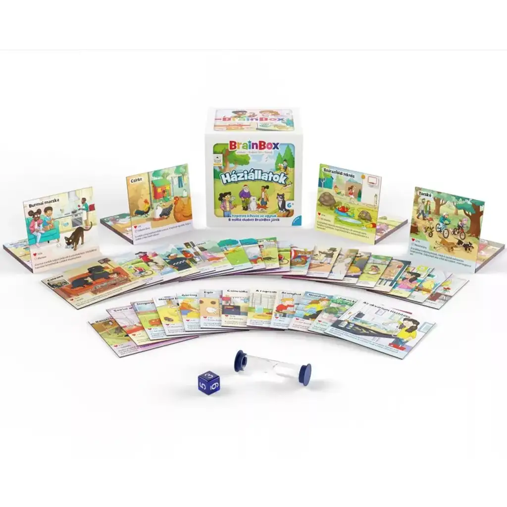 BrainBox – Domácí zvířata je skvělou volbou pro všechny malé milovníky zvířat, kteří chtějí zároveň hrát a učit se! Tato naučná paměťová hra je doporučena od 6 let a pomocí barevných, veselých karet představuje dětem nejoblíbenější domácí zvířata – psy, kočky, králíky, želvy a mnoho dalších oblíbených mazlíčků. Cílem hry je během 10 sekund si zapamatovat co nejvíce informací z karty a poté po hodu zodpovědět náhodnou otázku, která se ke kartě vztahuje.