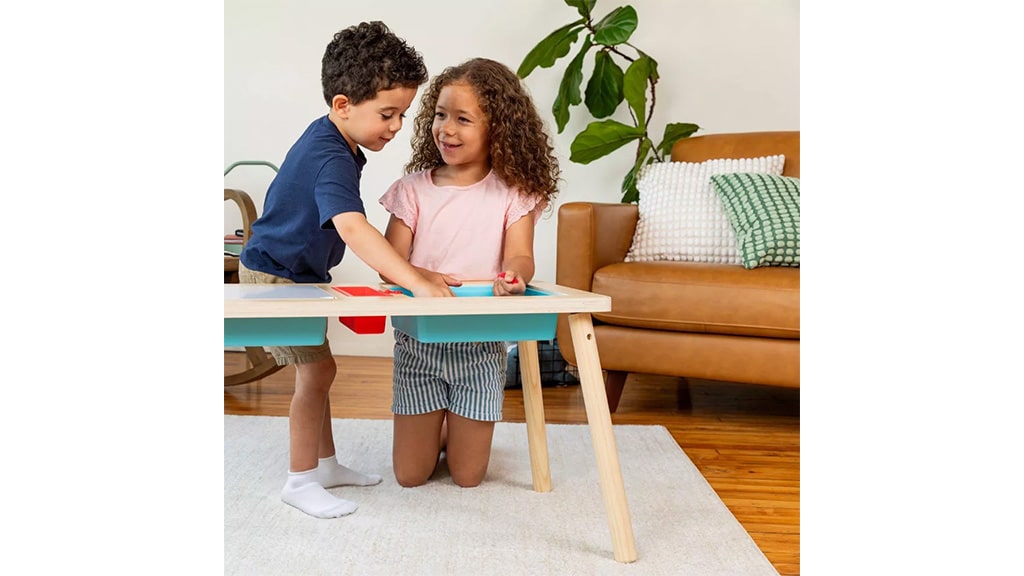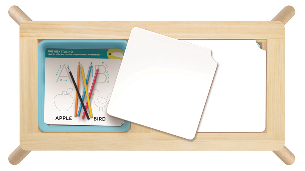 Snadno sestavitelný stůl nevyžaduje k montáži žádné nástroje. Aktivity podporují učení, kreativitu a rozvoj jemné motoriky. Na konci hry mohou děti snadno uklidit hračky pomocí úložných krabic a vík. Je ideální pro předškolní a mladší školní děti, protože jim pomáhá rozvíjet zručnost a schopnost řešit problémy.
