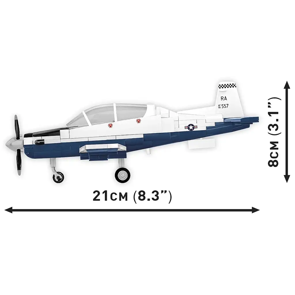 Tato stavebnice COBI představuje model celosvětově známého cvičného letounu Beechcraft T-6 Texan II, který využívá řada letectev různých států k výcviku pilotů. Model je vyroben ve speciální modro-bílé barevné kombinaci, která ještě více zvýrazňuje elegantní tvary letadla. Sestavit jej lze v měřítku 1:48 z celkem 197 vysoce kvalitních stavebních dílků. Proporce modelu věrně odpovídají originálu: délka 21 cm, rozpětí křídel 21,5 cm, výška 8 cm.