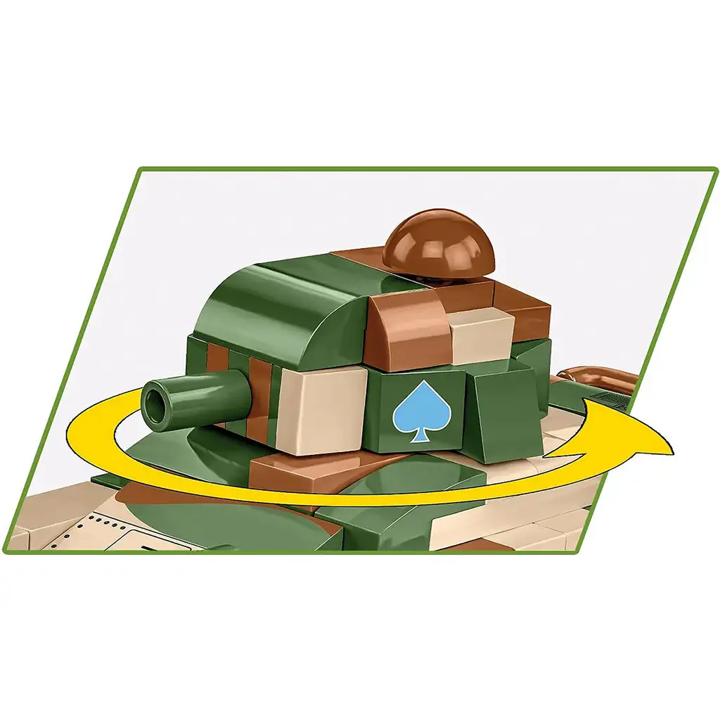 Tato stavebnice COBI připomíná slavný francouzský lehký pěchotní tank z počátku druhé světové války, Renault R-35 – konkrétně model z roku 1935 (Char léger modèle 1935 R) v měřítku 1:48. Sada obsahuje 258 vysoce kvalitních dílků, ze kterých lze postavit realistický, robustní model. Výjimečnou funkčnost stavebnice podtrhuje otočná věž, pohyblivé pásy a dvojitá francouzská a polská embléma, které připomínají skutečnou historii a službu tohoto tanku.
